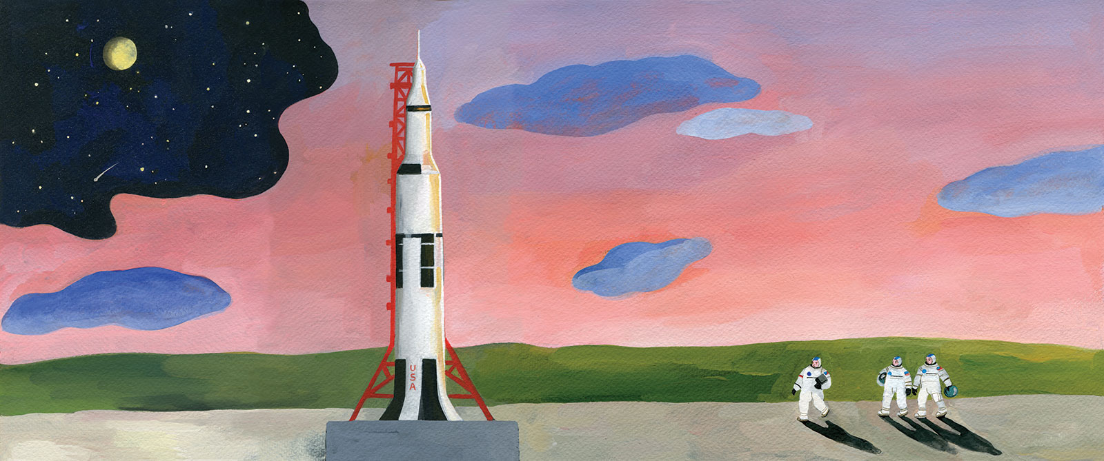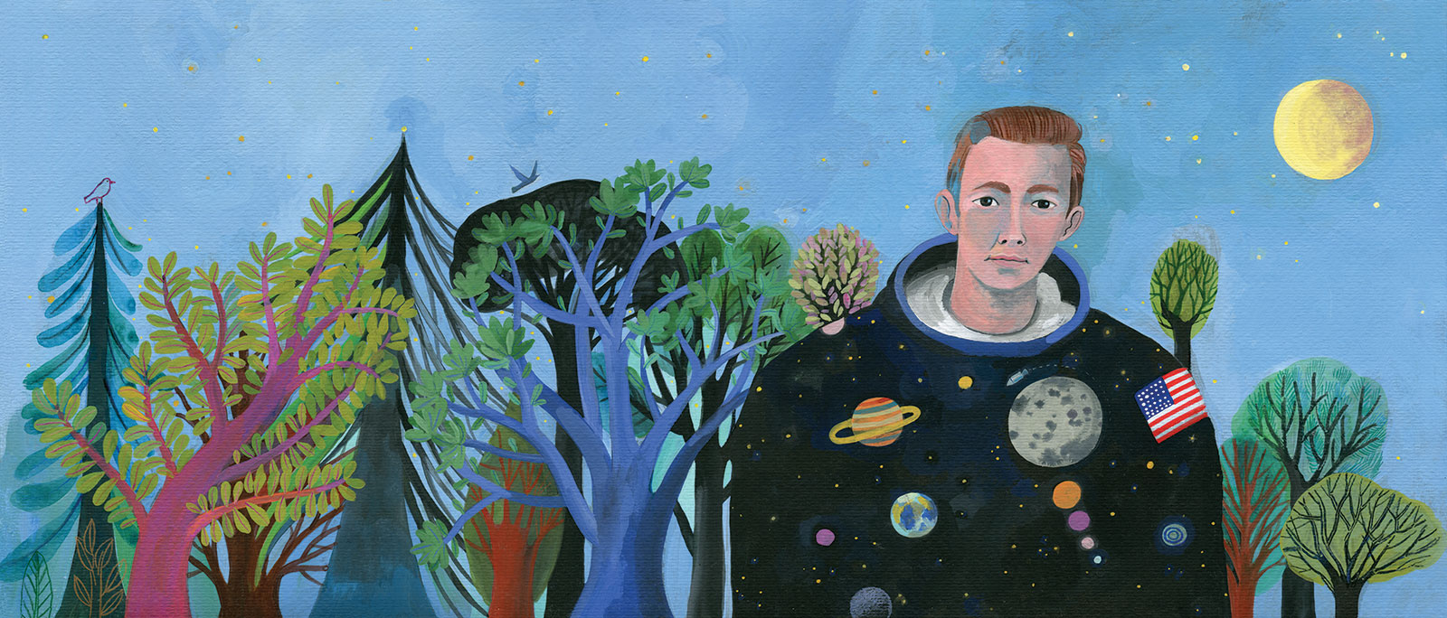 Benchmark Education Company commissioned Simona Mulazzani to illustrate, Moon Tree, the story of a little girl who finds a tree named a “moon tree” and wonders why. When no one knows, her third grade class is determined to find the answer. Their quest leads them to NASA and an extraordinary boy who grew up to be an astronaut.