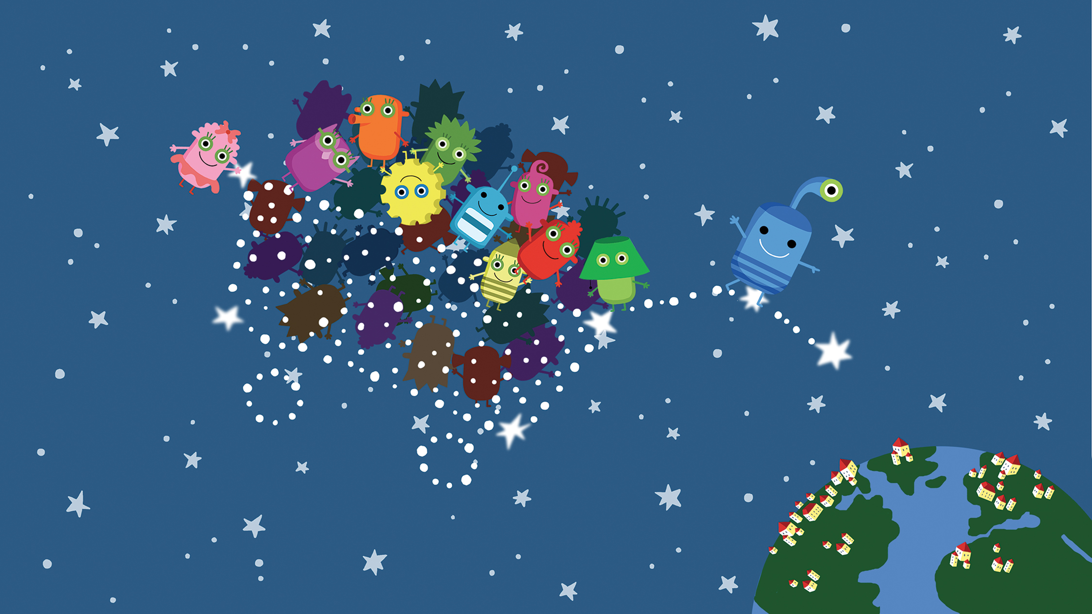 Valeria Petrone collaborated with an Italian design firm, Studio Elastico, to develop and illustrate an award winning app, Goodnight Dadà. The ‘Dadas’ are brightly-colored superheroes, each with a different superpower, that tell stories to children to help put their nighttime fears to rest.