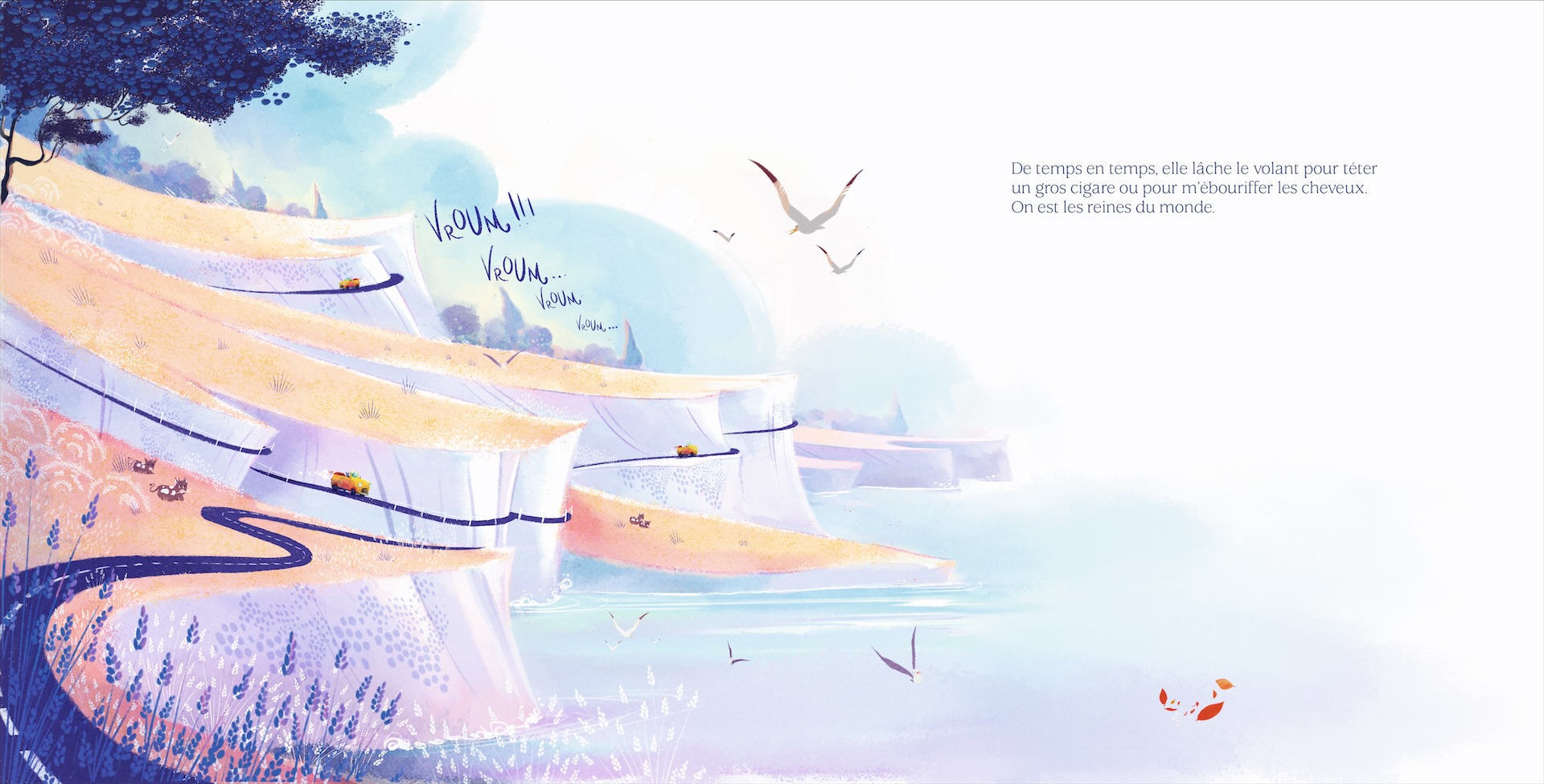 Lucie Dessertine illustrated “Papita,” published by On Ne compte pas pour du beurre in France. This is the story of a granddaughter and grandparent, who is transitioning from ‘grandpa’ to ‘grandma’ in the midst of their fun summer adventures. Papita offers a funny and positive story, where the dramatic tension is not what you would expect.