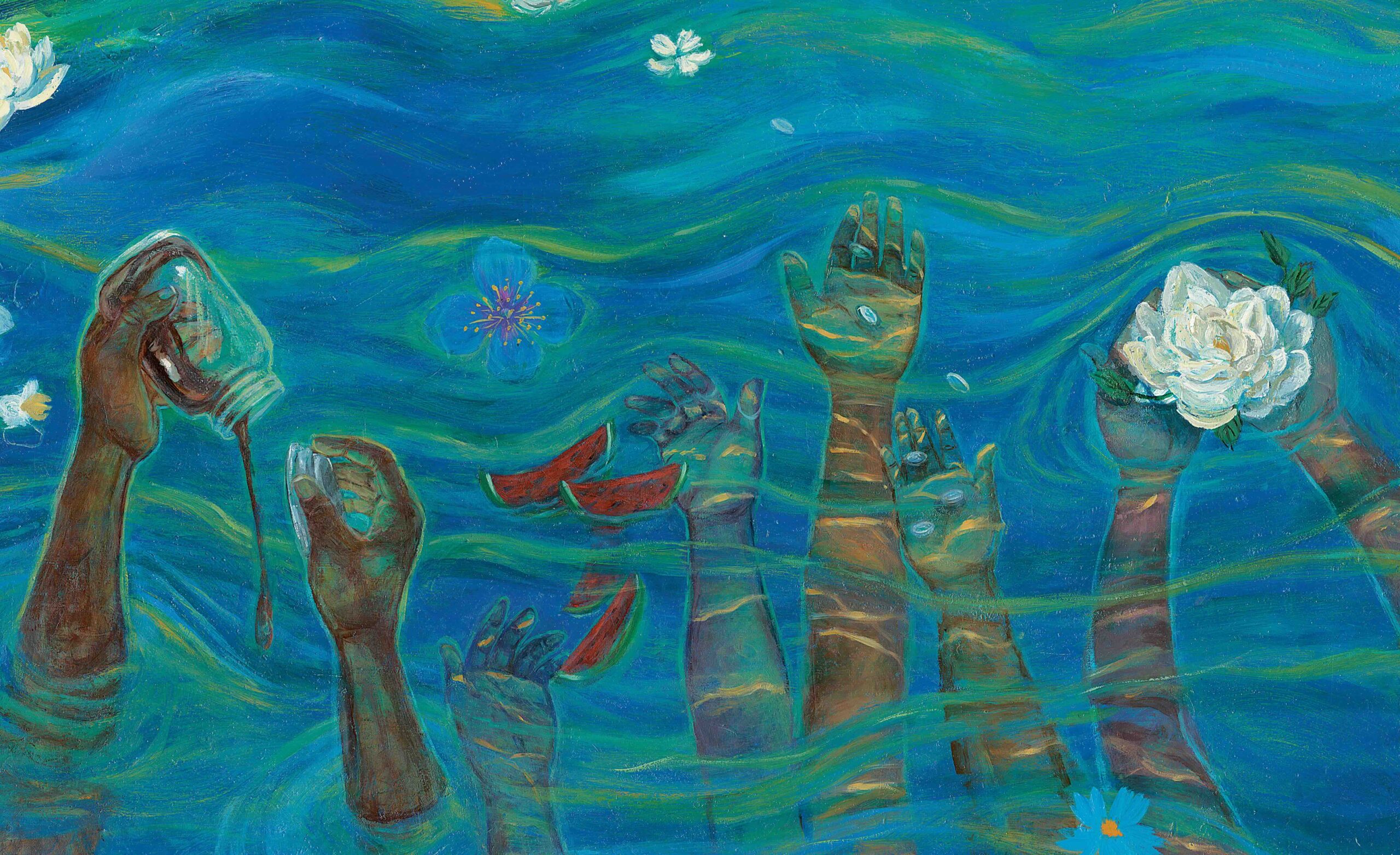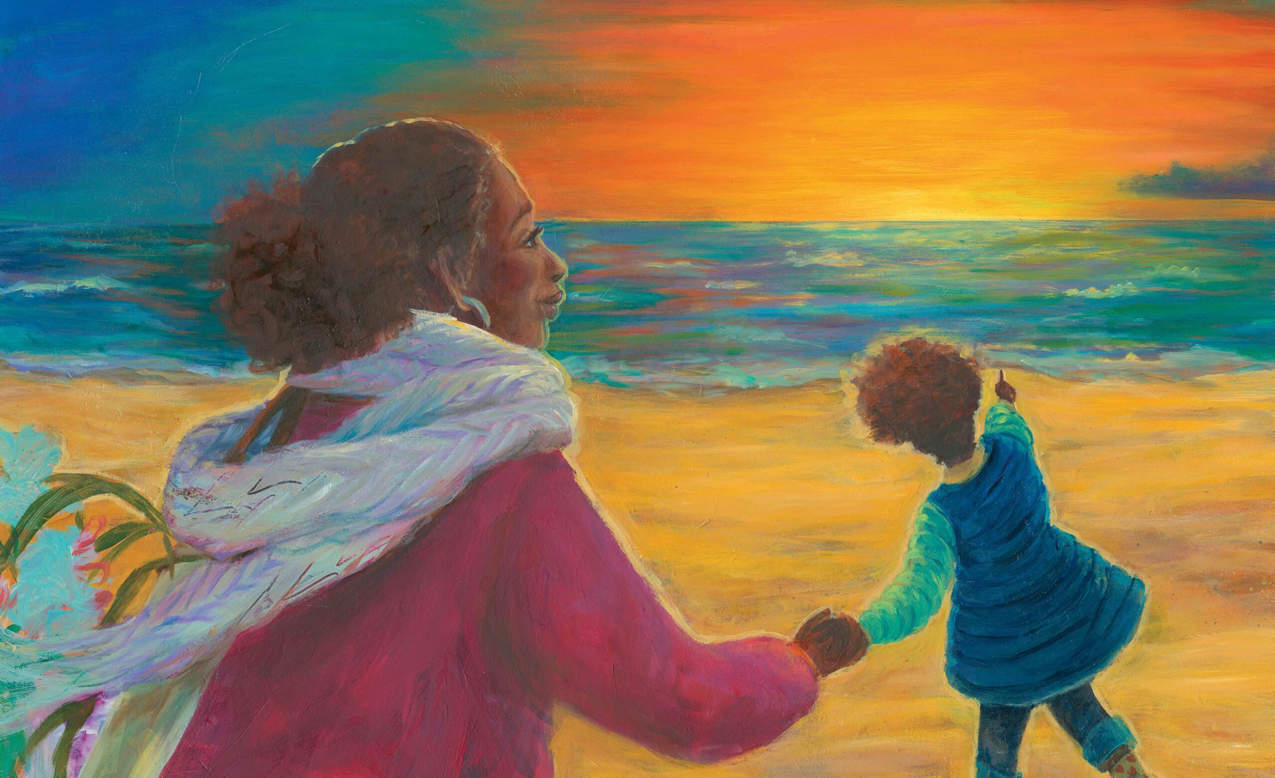 Simon & Schuster commissioned Tonya Engel to illustrate Yaya And The Sea, a picture book about a family that goes on a trip from the city to the sea in search of renewal and refresh. The picture book is an ode to sisterhood, nature and being present.